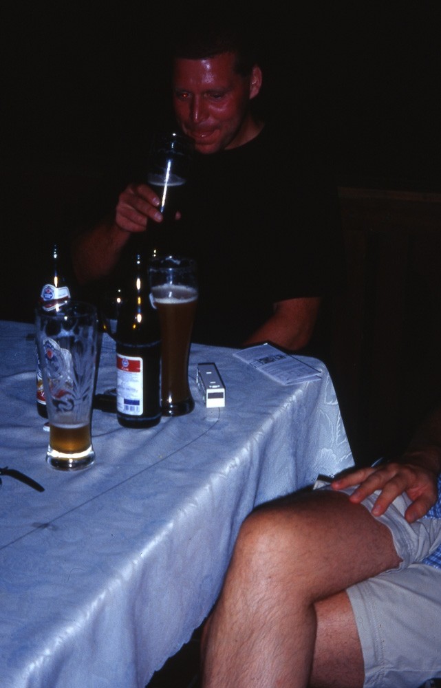 Lutz holt später mal wieder seinen Bus heraus. Wir erzählen Sabine und Huchti, dass wir geradelt sind und Lutz mit dem Bus gefahren ist 😉 Da Lutz schon während unseres Besuchs im Einkaufszentrums vorgetankt hat und mittlerweile in etwa die dritte Sorte Bier und die zweite Sorte Schnapserl intus hat, schläft er schon auf dem Balkon ein. Ein voller Erfolg 😉 Das Bier ist irgendwann ausgetrunken, vor uns liegt morgen eine schwere Bergetappe, und so gehen wir gegen ein Uhr schlafen.